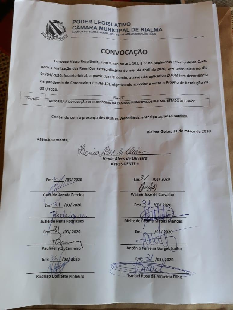 realizou neste dia 01/04/2020, reuniões extraordinárias por meio virtual, para